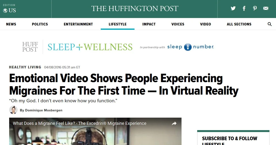 Leading with a 30 second TV spot and digital pre-roll trailers in the US, we invited people to watch the full film, along with four detailed character studies of real migraine sufferers.